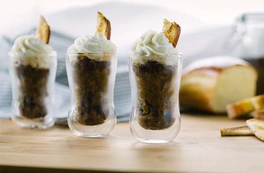 Podawaj Granitę w szklance. Udekoruj łyżeczką słodkiej ricotty i brioszkowym gofrem.